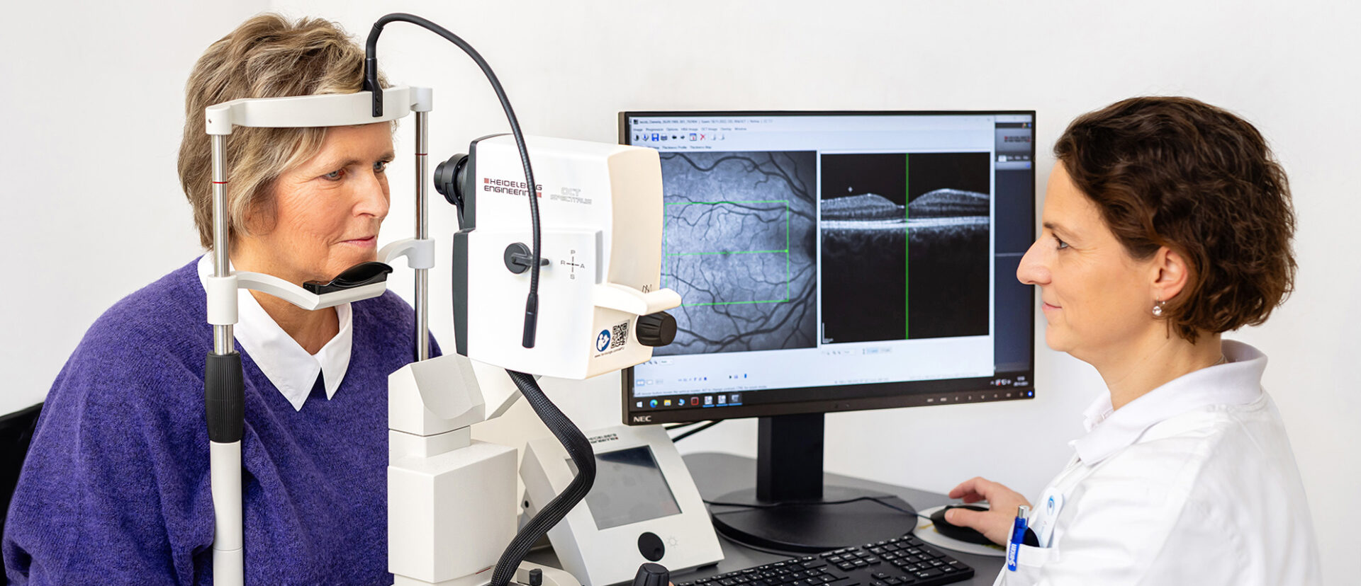 Die optische Kohärenztomografie ist ein hochauflösendes bildgebendes Verfahren, das Querschnittsbilder der Netzhaut und ihrer Schichten erstellt. Es verwendet Lichtwellen, um die Reflexion von verschiedenen Strukturen in der Netzhaut zu messen und detaillierte Schichtaufnahmen zu erzeugen. Mit dem OCT können Augenärzte Veränderungen in der Netzhaut, wie z. B. Makuladegeneration, diabetische Retinopathie, Glaukom und Netzhautablösung, frühzeitig erkennen und den Zustand des Auges genau beurteilen. Die OCT-Untersuchung ist schmerzfrei, nicht-invasiv und dauert in der Regel nur wenige Minuten.